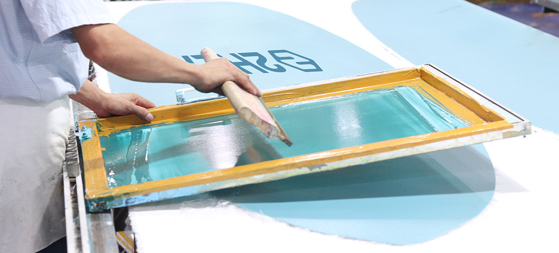 5. The PVC layer, which will later make the main body of the SUP board is placed under a digital SUP board printer, to receive a CMYK full print. Some other SUP board customers opt for silk screen printing. Both are printing techniques regularly used by your 2HEX SUP board manufacturer.