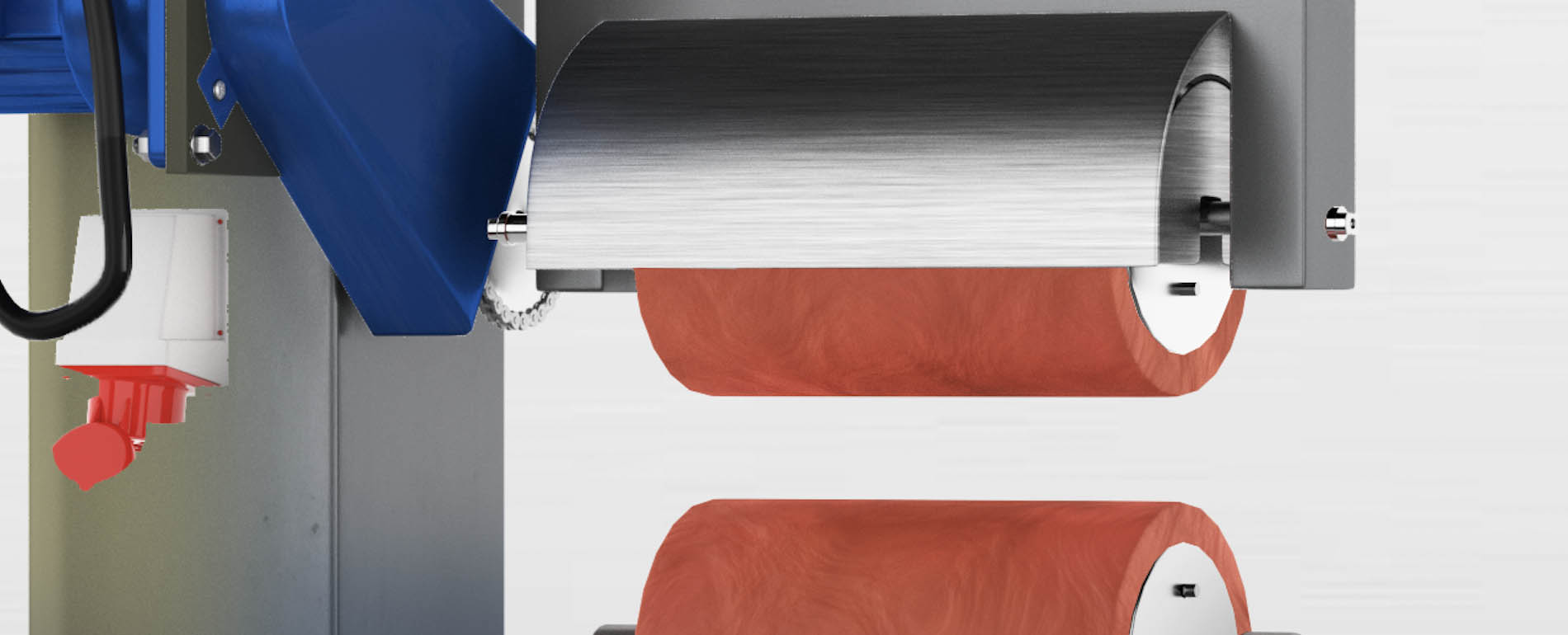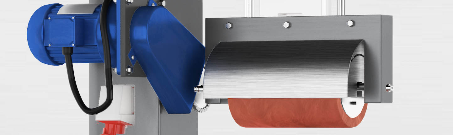 A heat transfer machine uses heating elements to heat the upper roller. The heating elements have to put out a lot of heat in a very short time for the rotating roller to collect enough heat to transfer the heat transfer prints onto decks. The balance between the heat and rotation have to be optimal, in order for the silicone roller to be hot enough to transfer print but not burn. If the motor gets jammed or the production facility experiences a power shortage the balance is broken. The upper roller stops spinning at once, but the heating elements stay hot for another 30 minutes. This can lead to the upper roller catching fire and the machine burning. To prevent the machine from burning we added an adaptor to the outside of the machine, which enables workers to use a standard wrench to manually turn the upper roller until either the power returns or the machine has cooled down.